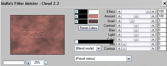 15 - Sélection/Sélectionner Tout Sélection/modifier/Contracter de 30 pixels 16 - Sélection/Inverser Effets/Mura's Meister/Clouds: