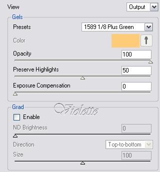 7 -Fermer le calque du fond Calques/Fusionner les calques visibles 8 - Effets/FM Tile Tools /Blend Emboss par défaut 9 - Ouvrir le calque fermé Calques/Fusionner Tout 10 - Ouvrir le tube "KaraT547" Edition/Copier/Edition/Coller comme nouveau calque Image/Miroir Image/Redimensionner à 40%/décocher " tous les calques" Placer dans la partie inférieure droite 11 - Calques/Fusionner Tout 12 - Effets/FM Tile Tools /Blend Emboss par défaut 13 - Ouvrir le tube "Giada_old_fashion" Edition/Copier/Edition/Coller comme nouveau calque Placer à gauche Effets/Effets 3D/Ombre Portée : 3/3/50/3/noir 14 - Activer le calque du fond Effets/Xero/Porcelain avec ces réglages : 5/128/128/0/0/255 15 - Calques/Fusionner Tout 16 - Effets/ Digital Films Tools/55mm GamColor CineFilters :