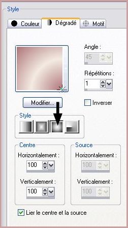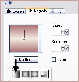 2 - Placer en avant-plan la couleur #ae7478 et en arrière-plan la couleur #f3ebe2Configurer un dégradé halo/Répétition: 1