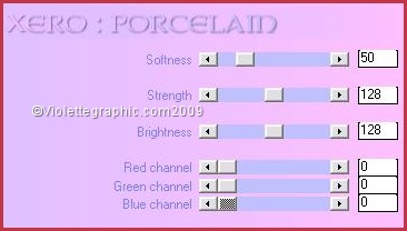 12 - Se placer sur le tube original Image/Redimensionner à 75% x 2 fois /décocher " tous les calques" Effets/Filtre xero/ Porcelain avec les réglages suivants :