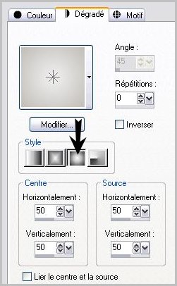 2 - Placer en avant-plan la couleur # f0f0f1 et en arrière-plan la couleur #c1bdb6Configurer un dégradé halo/Répétition: 0