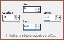 12 - Couches/Nouveau calque Activer l'outil sélection/clic sur Sélection Personnalisée Placer ces chiffres :