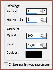 7 - Effets/Effets 3D/Ombre Portée : 1/1/100/45/couleur #000000