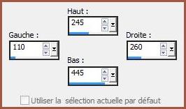 14 - Couches/Nouveau calque Activer l'outil sélection/clic sur Sélection Personnalisée Placer ces chiffres :