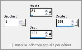 7 - Couches/Nouveau calqueActiver l'outil sélection/clic sur Sélection Personnalisée Placer ces chiffres :