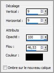 9 - Effets/Effets 3D/Ombre Portée : 9/ 9/ 100/ 46,53/couleur #000000