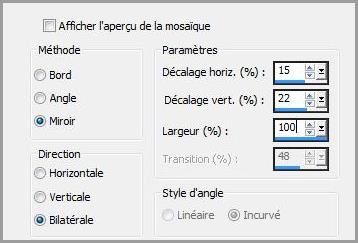 10 - Effets/Effets d'image/Mosaïque sans jointure réglages suivants :