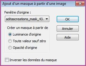 ** Activer le masque aditacreations_mask_43.jpg Couches/Nouveau calque de masque/à partir d'une image/Ajout d'un masque à partir d'une image sélectionner le masque aditacreations_mask_43.jpg