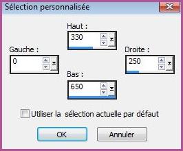 6 - Activer le calque 1 Activer l'outil sélection/clic sur Sélection Personnalisée Placer ces chiffres :