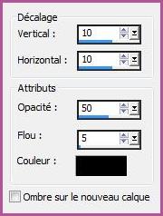 **Effets/Effets 3D/Ombre Portée : 10/10/50/5/couleur #000000