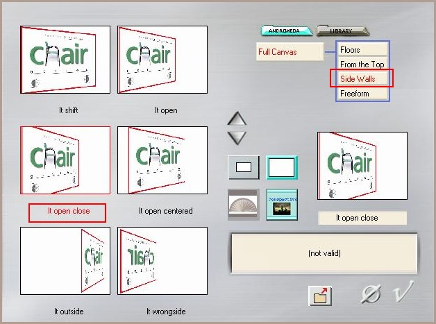 11 - Activer le calque 1 Effets/ Andromeda perspective/Side Walls/ it open close / Valider