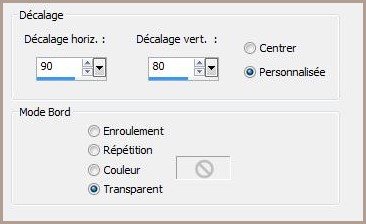 12 - Activer le calque copie de calque 1 Image/Redimensionner à 80%/décocher " Redimensionner tous les calques" **Effets/Effets d'image/Décalage réglages suivants :