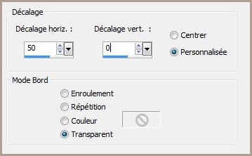 **Image/Redimensionner à 120%/décocher " Redimensionner tous les calques" **Effets/Effets d'image/Décalage réglages suivants :