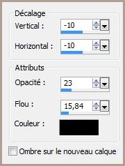 14 - Effets/Effets 3D/Ombre Portée : -10/-10/23/15,84/couleur #000000