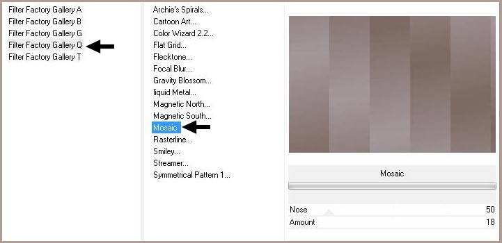 17 - Activer le calque du fond Effets/Filter Factory Galery Q/ Mosaïc réglages suivants :