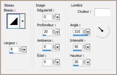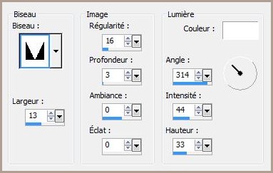 **Effets/Effets 3D/Biseautage Intérieur réglages suivants :