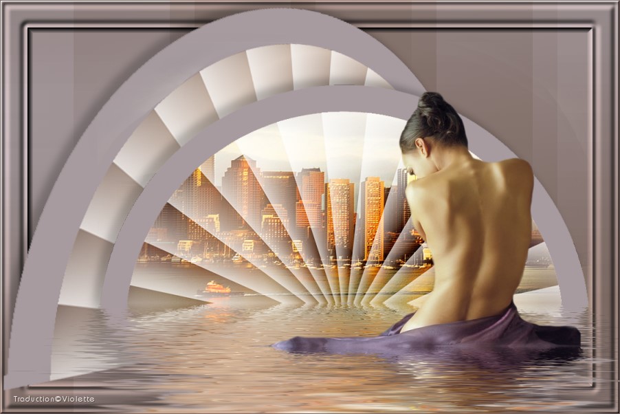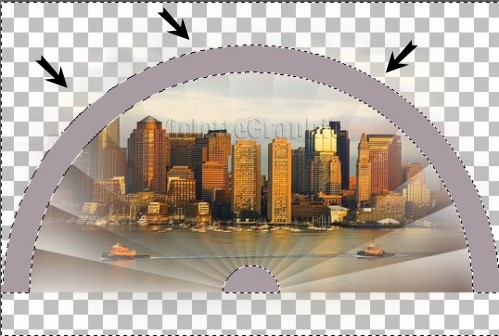 8 - Calques/Nouveau calque **Activer le tube 2721-luzcristina.pspimage Edition/Copier/Edition/Coller dans la sélection A l'aide de l'outil gomme effacer le surplus du tube qui dépasse le demi-cercle