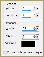 **Sélection/Transformer la sélection en calque ** Effets/Effets 3D/Ombre Portée : 10/10/40/15/couleur #000000 Répéter l'ombre portée avec les valeurs négatives : - 10 Sélection/Ne rien sélectionner