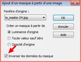 4 - Activer le masque la_maske-24.jpg Calques/Nouveau calque de masque/à partir d'une image/Ajout d'un masque à partir d'une image sélectionner le masque la_maske-24.jpg