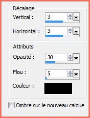 8 - Effets/Effets 3D/Ombre Portée : 3/3/30/5/couleur #000000