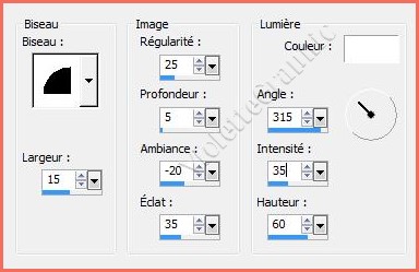 **Sélectionner la bordure avec la baguette magique ( valeur: RVB /Tolérance et Progressivité à 0 /intérieur) ** Effets/Effets 3D/Biseautage Intérieur réglages suivants :