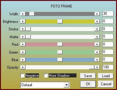 11 - Image/Ajouter des bordures : 25 pixels couleur # 610102Sélectionner la bordure blanche avec la baguette magique sélection/Inverser **Effets/AAA Frames/Foto Frame réglages suivants :
