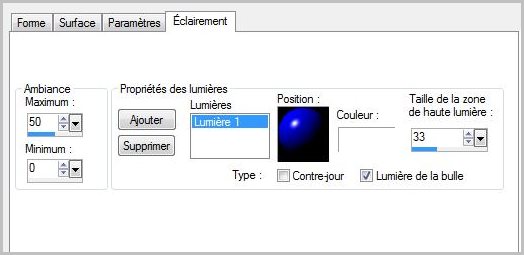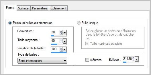 9 - Effets/Effets Artistiques/Bulles réglages suivants :