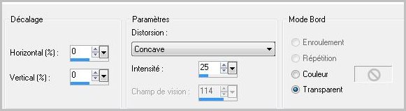18 - Effets/Effets de Déformation/Distorsion de l'objectif réglages suivants :