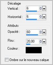 19 - Effets/Effets 3D/Ombre Portée : 6/6/60/20/couleur #000000 Répéter avec des valeurs négatives : -6 en décalage vertical et horizontal