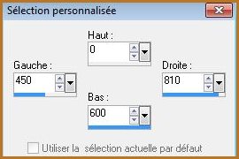9 - Couches/Nouveau calque Activer l'outil sélection/clic sur Sélection Personnalisée Placer ces chiffres :