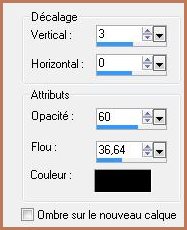 13 - Effets/Effets 3D/Ombre Portée : 3/0/60/36,64/couleur #000000