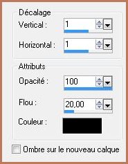 6 - Effets/Effets 3D/Ombre Portée : 1/1/100/20/couleur #000000
