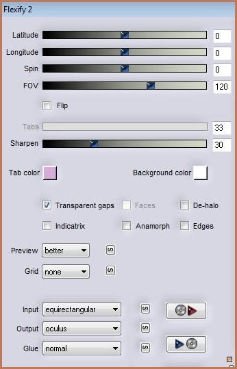 7 - Effets/ Flaming Pear/Flexify 2 réglages suivants : 8 - Couches/Nouveau calque remplir de couleur #df7d5a ** Couches/Arranger/Déplacer vers le bas