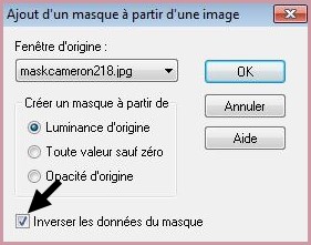 5 - Activer le masque Maskcameron218.jpg Couches/Nouveau calque de masque/à partir d'une image/Ajout d'un masque à partir d'une image sélectionner le masque Maskcameron218.jpg