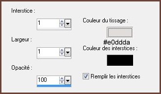 Répéter avec des valeurs négatives : -4 en décalage vertical et horizontal **Effets/Effets de bords/Accentuer 8 - Effets/Effets de Textures/Textile réglages suivants :