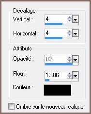 ** Effets/Effets 3D/Ombre Portée réglages suivants :