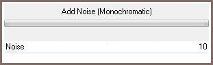 11 - Effets/Simple/ Diamonds Effets/Unlimited/Noise Filter/ Add Noise réglages suivants :