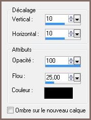 16 - Sélection/Inverser Effets/Effets 3D/Ombre Portée : 10/10/100/25/couleur #000000