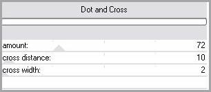 11 - Image/Ajouter des bordures : 25 pixels couleur claire Sélectionner la bordure avec la baguette magique Effets/Unlimited/Pentacom: Dot and Cross avec ces réglages :