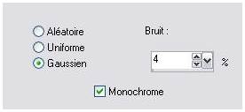 7 - Calques/Nouveau calque Remplir du même dégradé 8 - Réglages/Flou/Flou gaussien : rayon : 20 9 - Réglages/Ajouter du bruit/Ajouter du bruit :