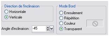 3 - Placer en avant-plan une couleur claire et en arrière-plan une couleur foncée assorties au tube Configurer un dégradé linéaire angle: 0°/Répétition: 1 Remplir votre image