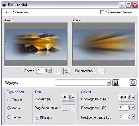 5 - Réglages/Flou/Flou radial avec ces réglages:
