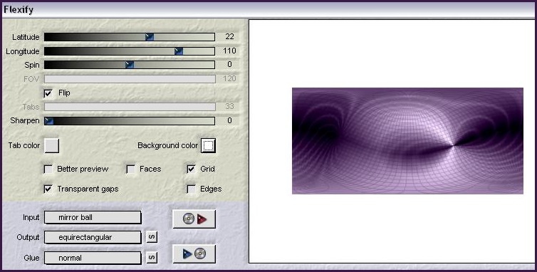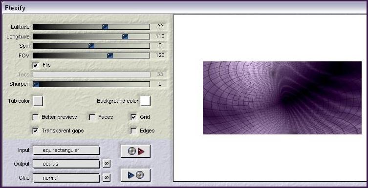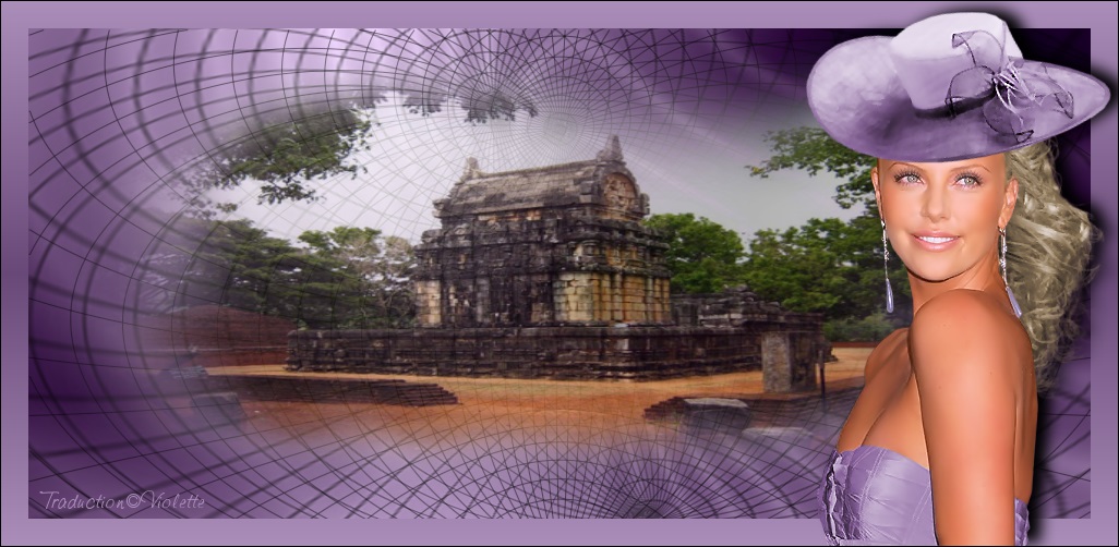 3 - Placer en avant-plan la couleur #aa8db9 et en arrière-plan la couleur #684877 Configurer un dégradé linéaire angle: 0°/Répétition: 1 Remplir votre image