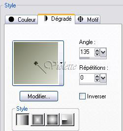 *** 1 - Ouvrir les tubes, les dupliquer et fermer les originaux ouvrir votre pinceau pretty edge et l'exporter dans votre dossier pinceau installer vos filtres 2 - Placer en avant-plan la couleur # 6E7159 et en arrière -plan la couleur #E0E1D5Configurer le dégradé linéaire angle : 135° répétition :0 inverser non coché