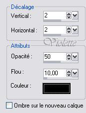cliquer sur le côté gauche avec la couleur avant-plan 5 - Effets/Effets de bords /Accentuer6 - Effets /Effets 3D/ Ombre Portée : 2/2/50/10/noir
