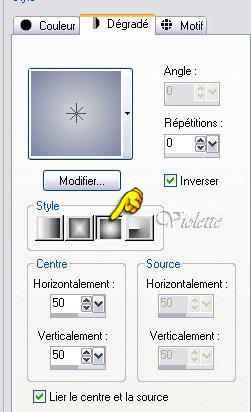 *** 1 - Ouvrir les tubes, les dupliquer et fermer les originaux installer votre filtre et votre motif argent dans les dossiers correspondants 2 - Placer en avant-plan la couleur #7a83a0 et en arrière -plan la couleur #d5d7dbConfigurer le dégradé halo angle : 0° répétition : 1 inverser coché