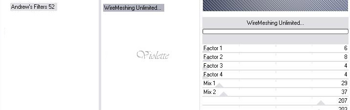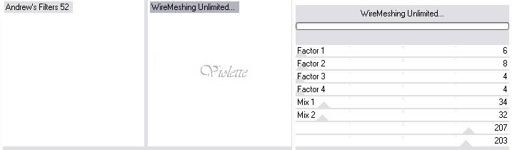3 - Ouvrir une image transparente de 680 x 480 pixels /Remplir de dégradé 4 - Calques / Dupliquer Effets /Unlimited/ Andrew's Filter 52/ Wiremesching Unlimited