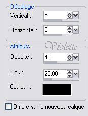 remplir de motif Yoka-argent Désélectionner Effets /Effets 3D/ Ombre Portée : 5/5/40/25/noir