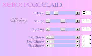 8 - Ouvrir le tube Marif-2006-octobre-misted-Lady-0102Edition/Copier/ Edition/Coller comme nouveau calque Placer sur la gauche Effets/ xero/porcelain avec ces valeurs: