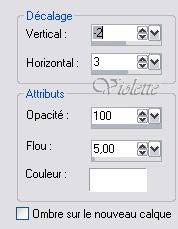 7 - Ouvrir le tube yoka / Image / redimensionner à 85% puis 70% Edition/Copier/ Edition/Coller comme nouveau calque Placer sur la gauche Dupliquer Réglages / Flou/ Flou gaussien : rayon : 14 Effets /Effets 3D/ Ombre Portée : -2/3/100/5/blanc